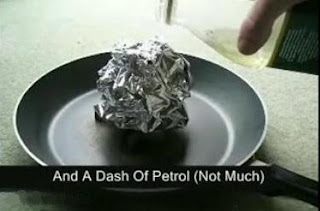 ورقه ی آلومینیومی (فویل) رو مچاله کنید و روی این قطعات بذارید، مقداری نفت یا بنزین روش بریزید: